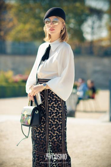 丝质白衬衫贝雷帽和蕾丝透视裙,优雅的法国女人怎能少一件,丝质衬衣呢?