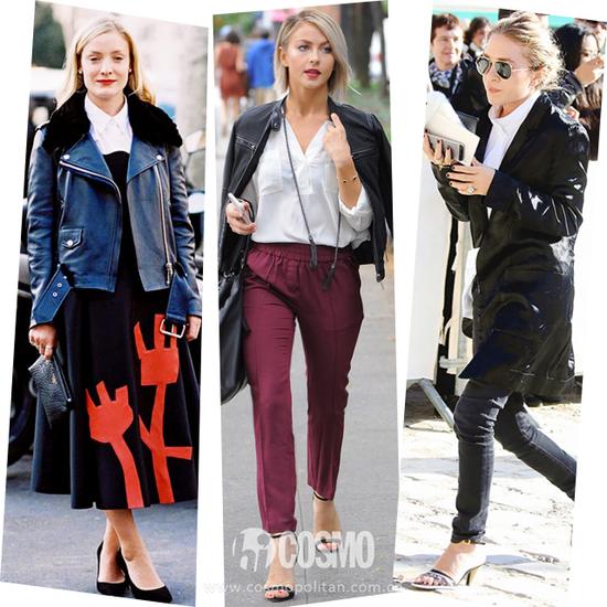 白衬衫+短款外套白色衬衣与皮衣的搭配,让酷酷的皮衣多一些正式的韵味。衬衣领也是绝佳的叠穿单品,无论怎么搭,都能有种精干的感觉。