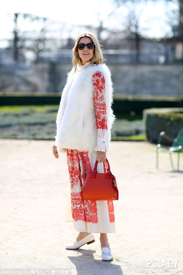 淡雅军绿色套装会给人一种利落、干净、且时尚感加倍的视觉效果。皮草颜色与套装高度吻合,让达科塔·约翰逊(Dakota Johnson)每一寸肌肤看起来更加水润白皙。