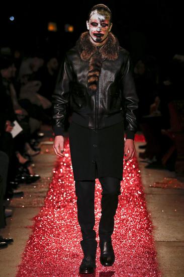 男人都爱穿黑色,不单单是为了装深沉,更因为黑色的独立以及它在时装界中不可替代的地位。而随着暗黑系列的永不衰退,秀场布置的也格外引人入胜,令人印象深刻的就是本季以“死亡”为题材的Thom Browne和铺满暗红亮粉的Givenchy by Riccardo Tisci秀场,神秘而阴郁。然而设计师们也会挑战大众观念,创造一些“打破”式的黑色造型,加入一点不敢触碰的色彩,是不是更具挑战性了?