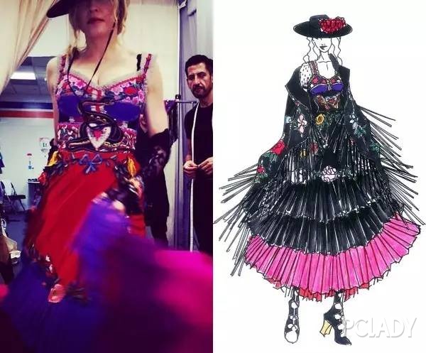 Madonna的“Rebel Heart”世界巡回演唱会中的一套礼服也出自Gucci家。