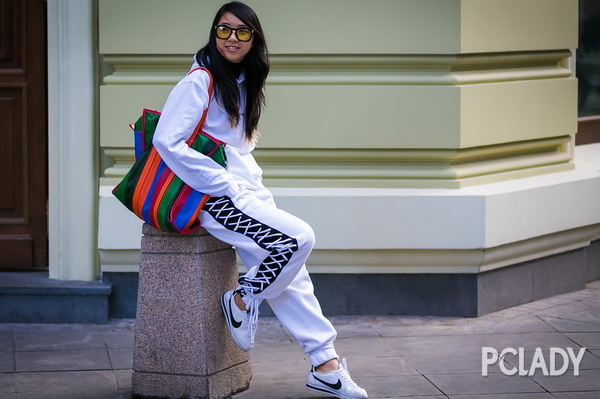 PC酱在这里澄清一点,咱鼓励你穿运动范儿,不是天桥地摊儿运动范儿,咱是讲究细节的!比如春春这条Xander Zhou彩虹条纹裤,看着就有好心情~