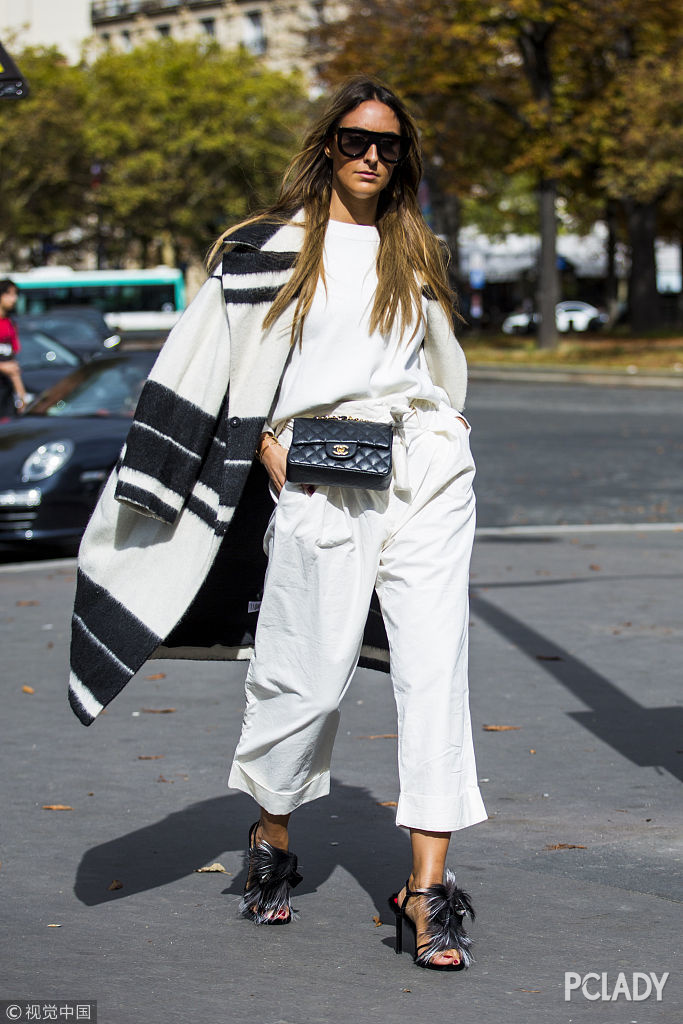大面积的白色则可以冲淡黑白搭配的正式感,十分清爽,就连厚重、华丽的皮草外套换上白色也利落过人,十分讨喜。